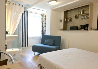 L’organisation originale du studio Marine en deux espaces séparés lui donne un charme particulier :