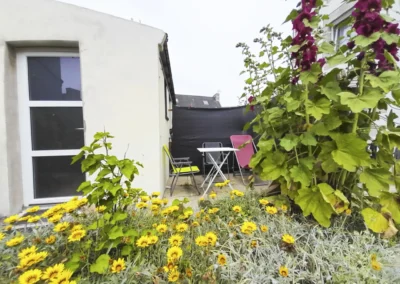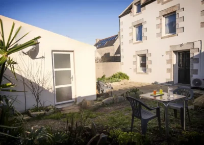 À l’extérieur, vous profitez d’un jardin privatif avec salon de jardin pour partager vos repas en plein air.